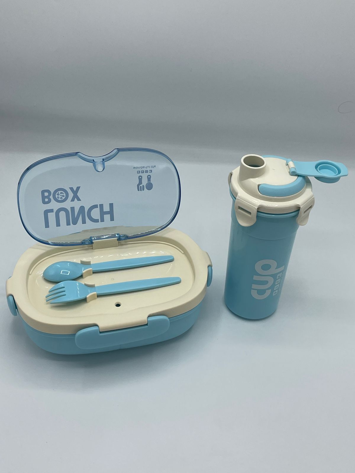 This sky-blue lunch box set includes one spoon, one fork, and a matching bottle. Made from durable, BPA-free plastic, it's safe, lightweight, and perfect for everyday school use. 🥄🍱🥤