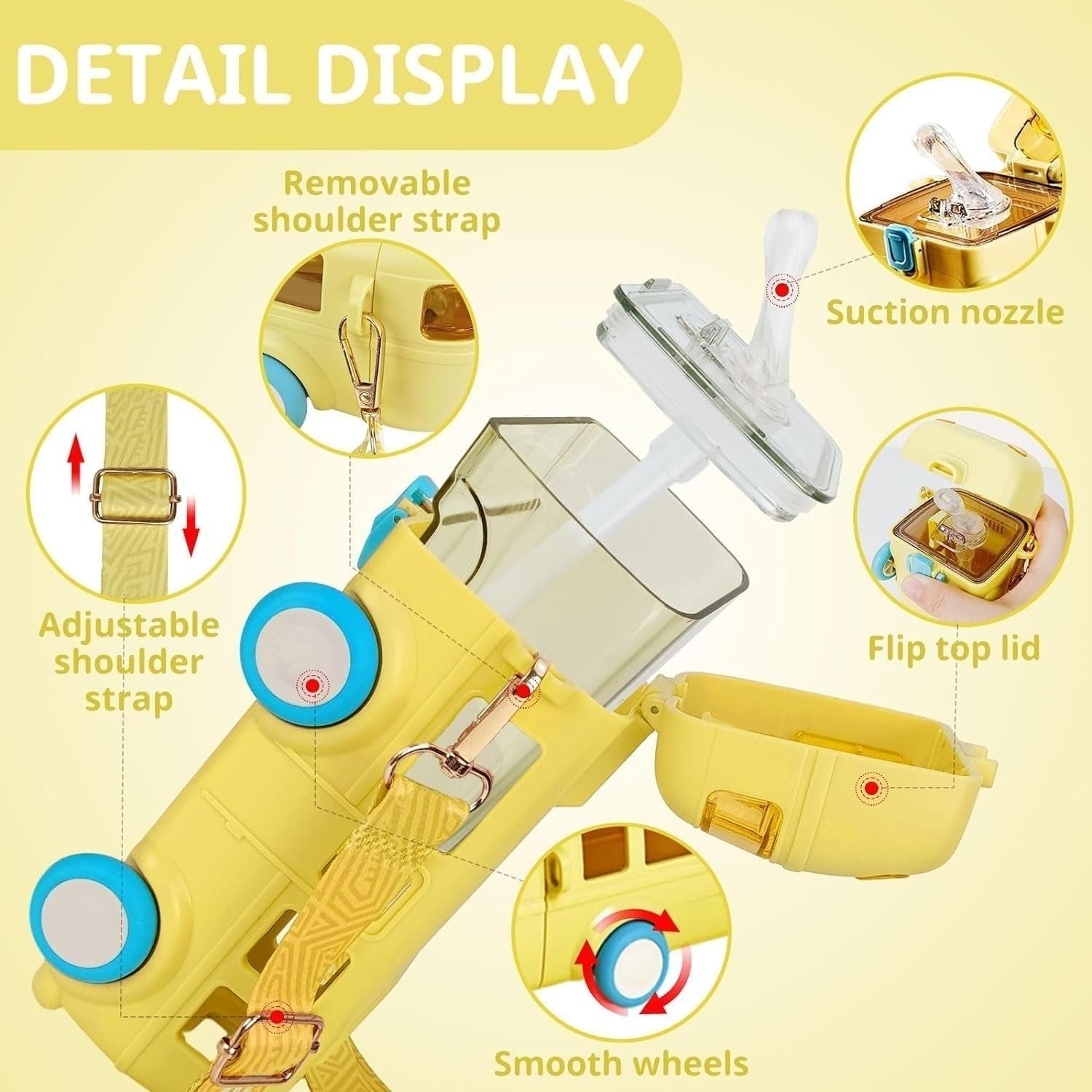 Β π This adorable cartoon bus water bottle doubles as a fun toy with movable wheels! ππ§ Leak-proof with a flip-lock lid, itβs perfect for kidsβ daily hydration and playtime fun. Compact, portable, and totally cute! π§β¨Β
