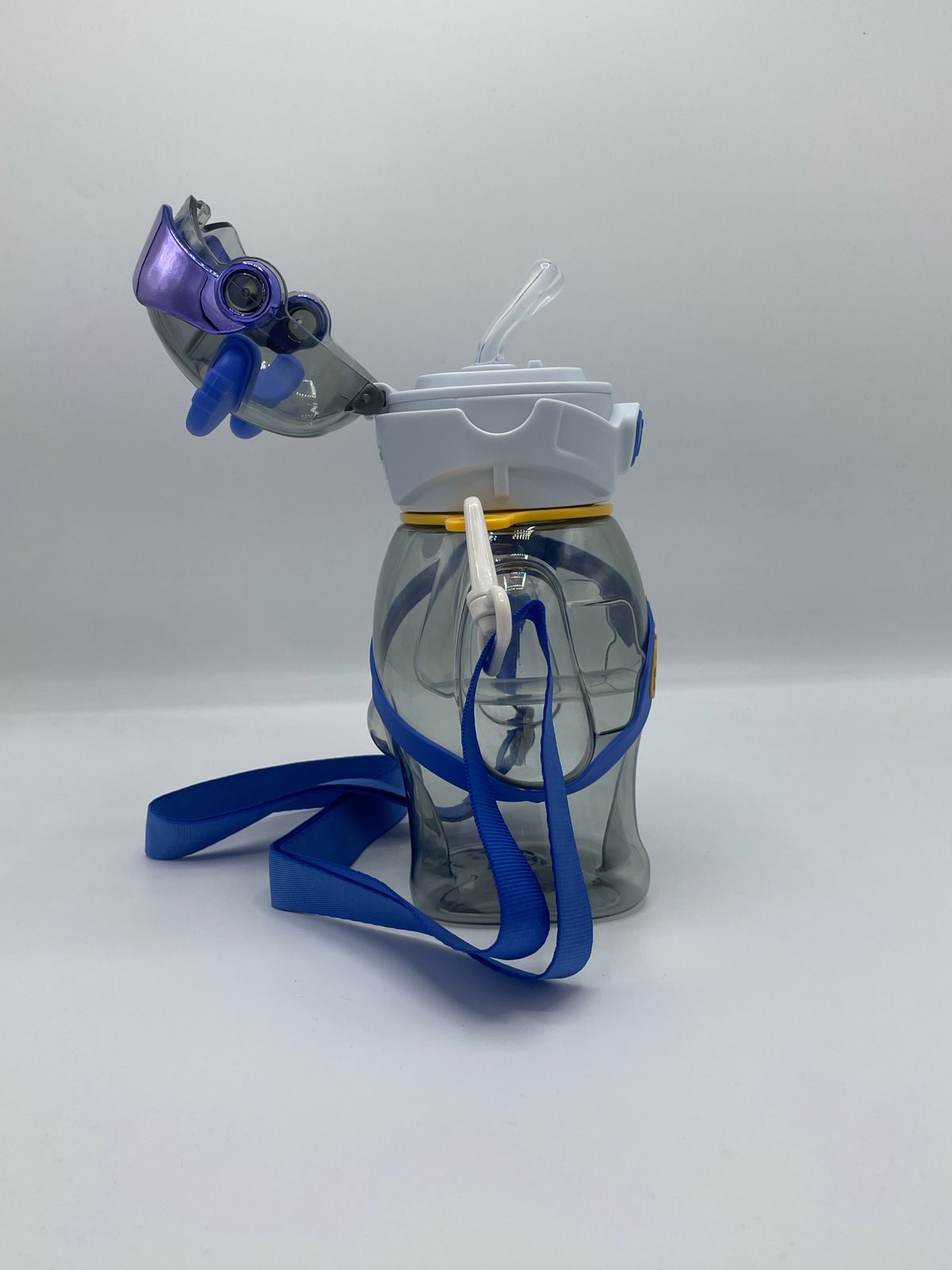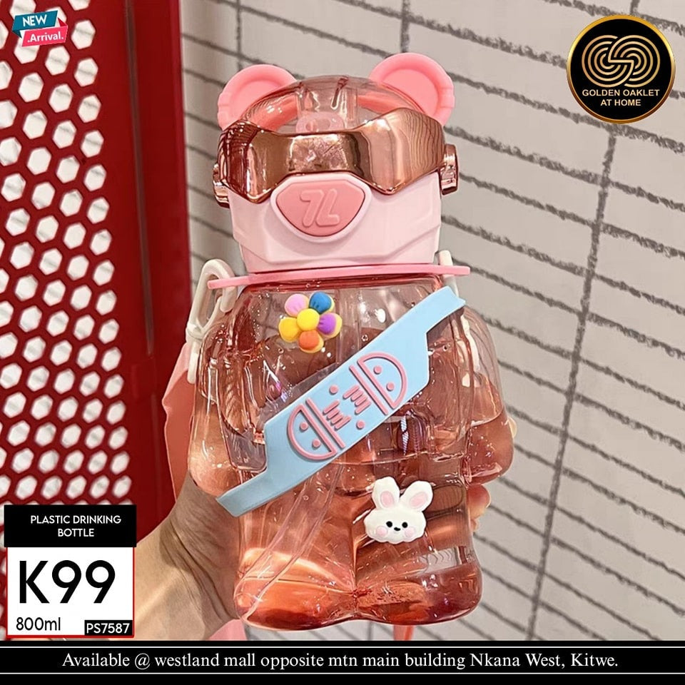 This adorable Robot Bear Bottle is shaped like a standing teddy bear 🤖🐻 with tiny legs and a round body, giving it a fun and friendly look. The helmet-style lid features shiny sunglasses and 3D bear ears for a futuristic robot touch 🚀🕶️. It includes a matching strap for easy carrying—perfect for little explorers!