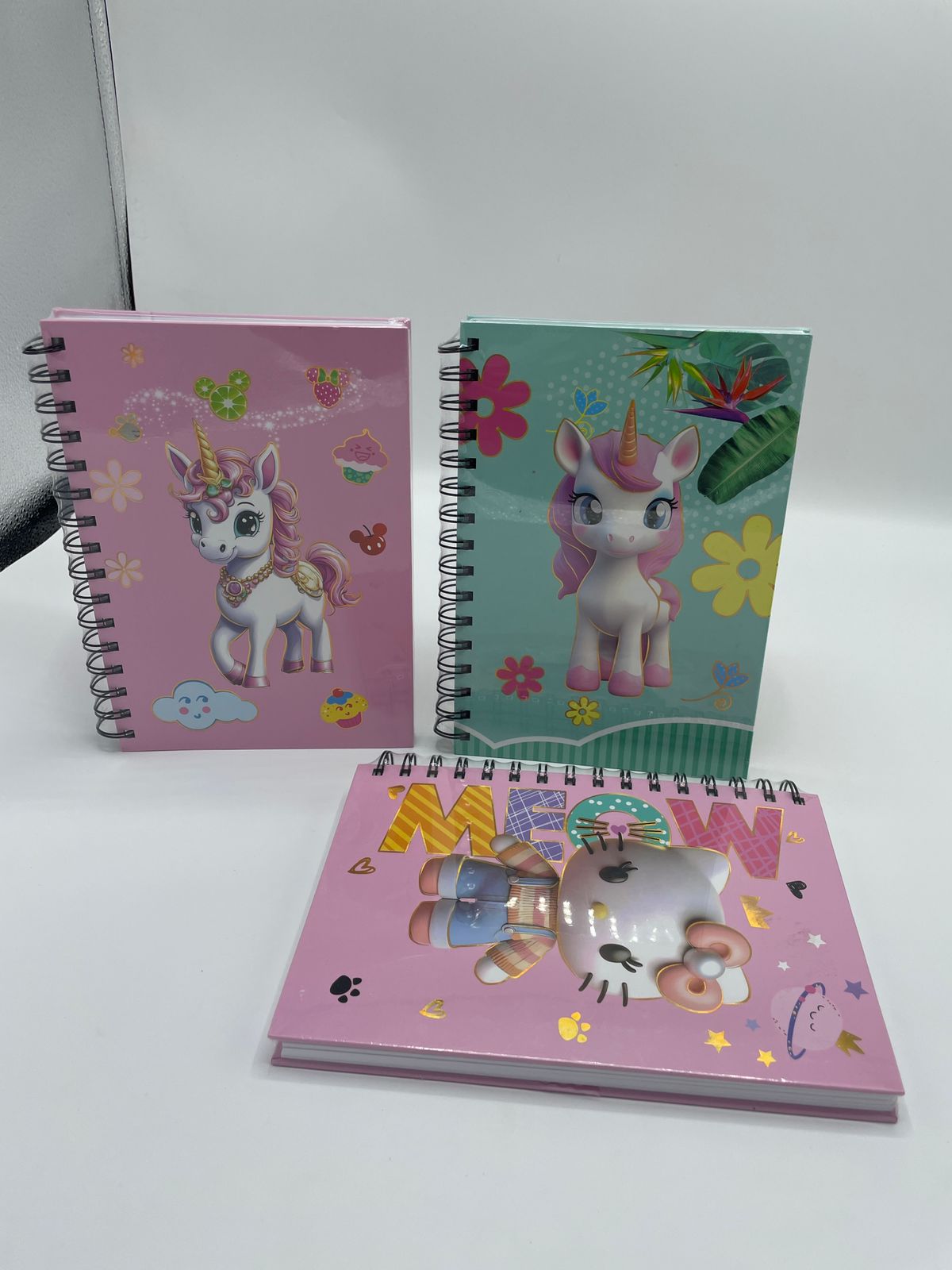These cute spiral-bound diaries feature colorful unicorn and kitty designs. Ideal for kids' school use, journaling, or creative doodling. Durable covers and fun artwork make writing exciting and enjoyable every dayΒ