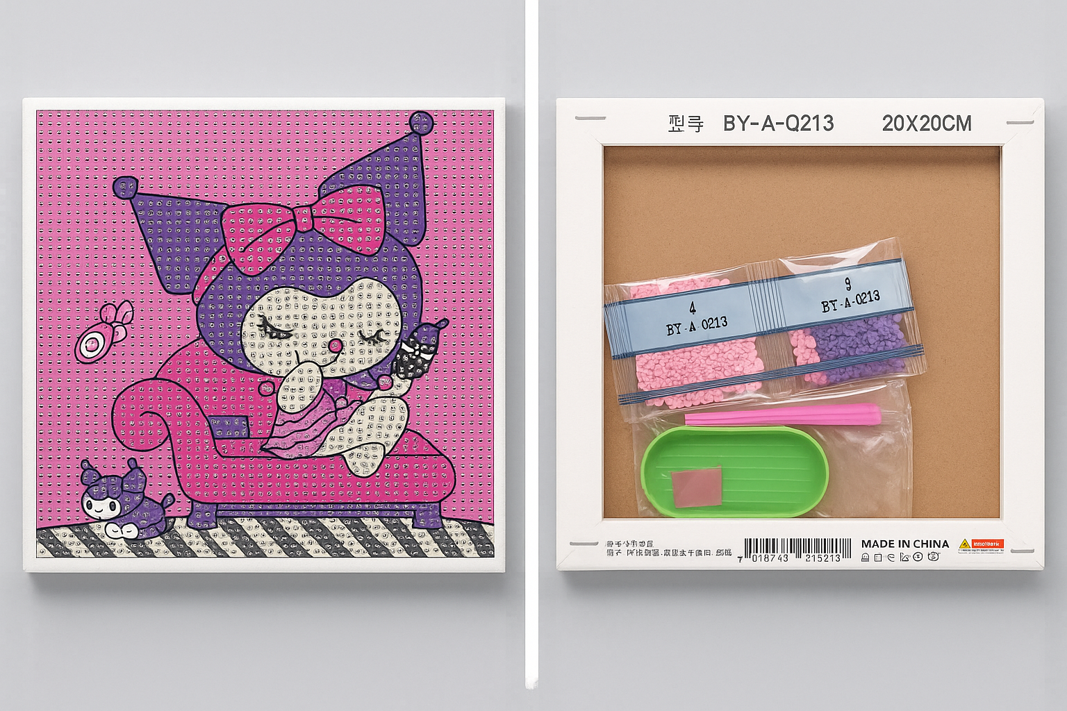 This beautiful diamond painting canvas features cute cartoon characters and comes with everything you need to get started: