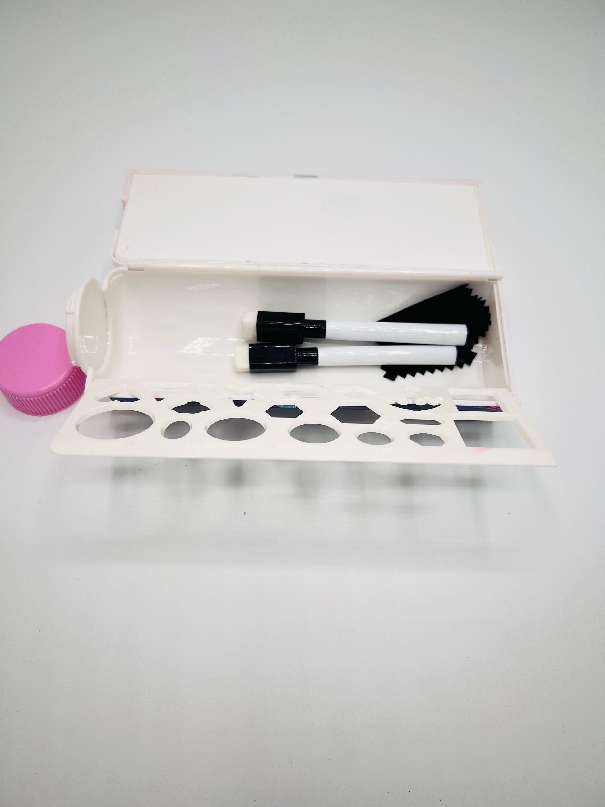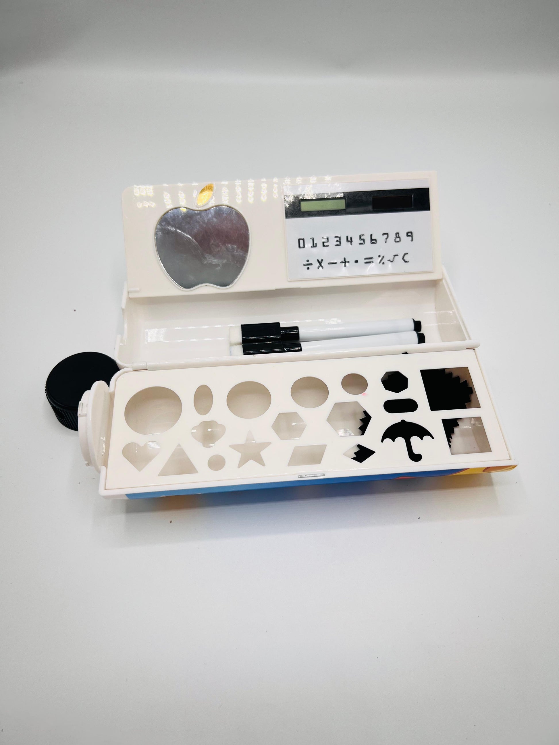 Creative geometry box with mirror, calculator, and stencils—perfect for school and learning fun! 🎓🖊️